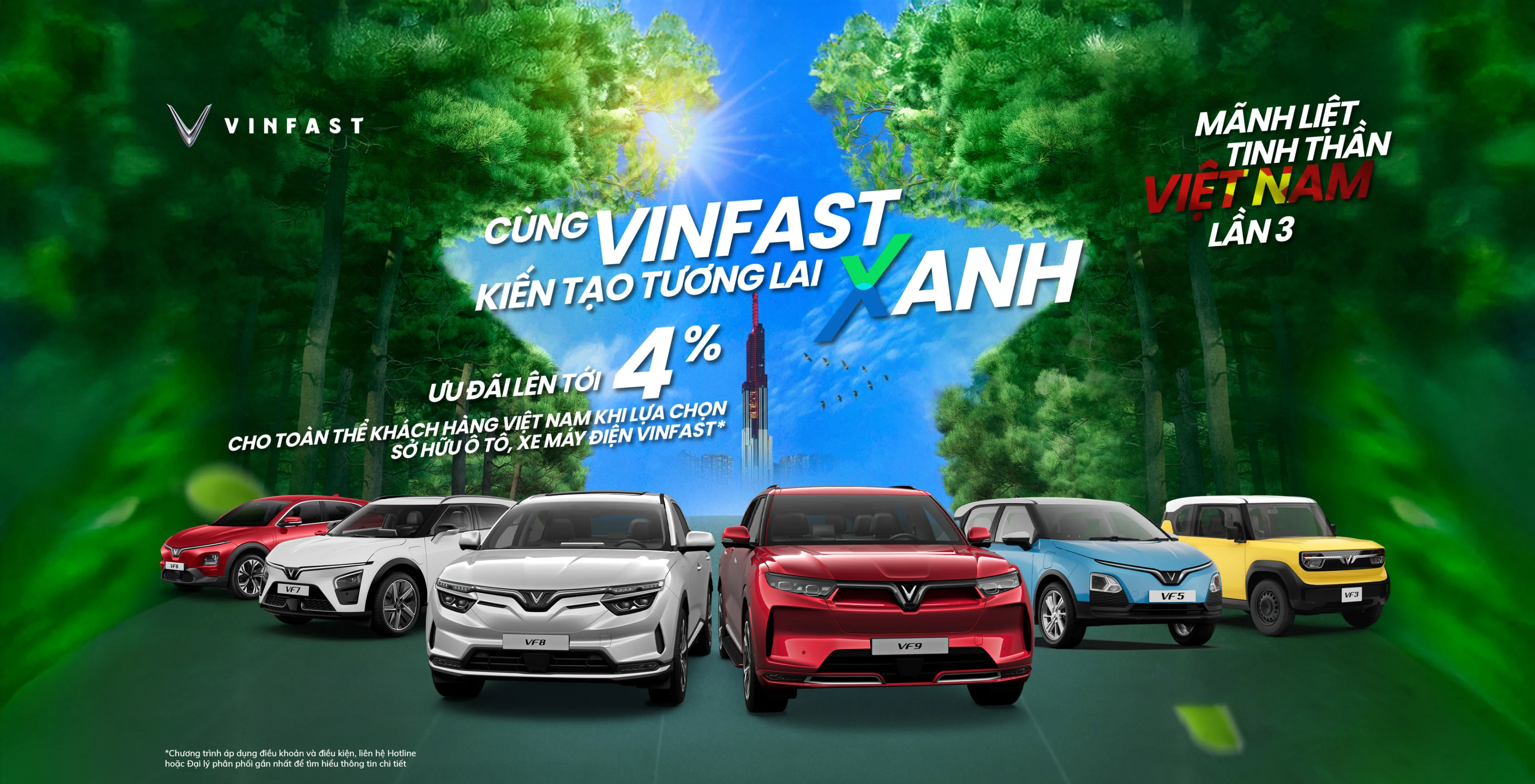 - VinFast VF3: 299.000.000 khuyến mãi 4% tương đương 11.960.000 giá ưu đãi 280.000.000 (Tặng 6.000.000 tích điểm Vinclub áp dụng cho khách ra biển số Hà Nội, TP.HCM); Hỗ trợ giảm lãi suất 3% trong 3 năm, Tặng 2 năm bảo hiểm thân vỏ, khách bán xe xăng mua xe điện được giảm thêm 6 Triệu - Liên hệ trực tiếp để có giá tốt hơn nữa